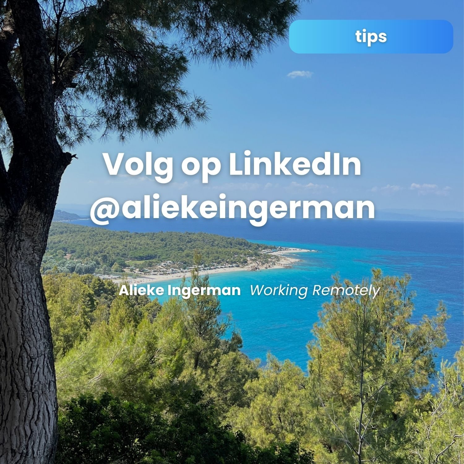 Op LinkedIn deelt Alieke dagelijks tips over werken vanuit het buitenland, remote banen vinden, interessante werkgevers, een workation organiseren en netwerken als digital nomad.